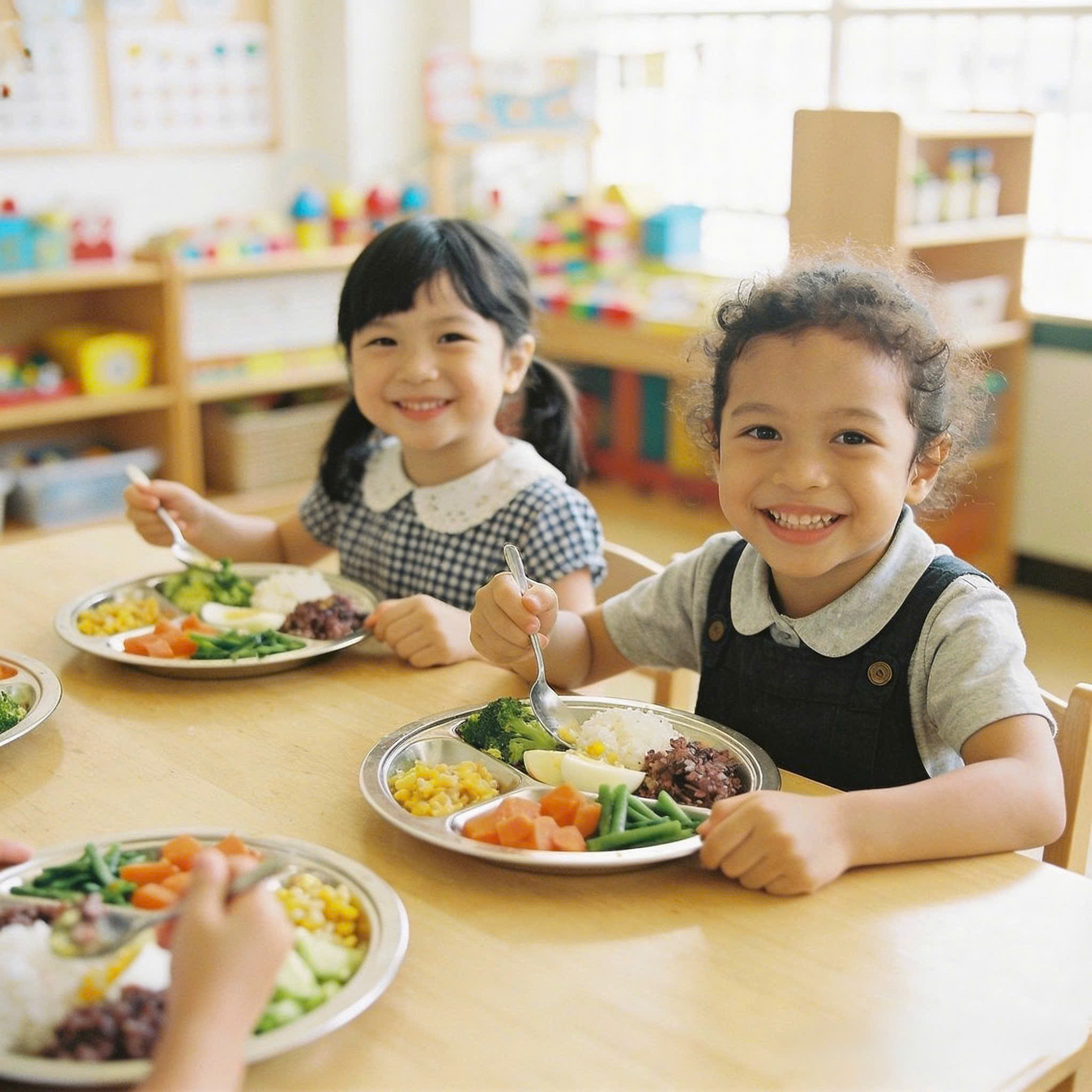 Các Cô cấp dưỡng của Trường có kinh nghiệm và bằng cấp, chế biến nhạt, không sử dụng các loại gia vị tinh luyện công nghiệp. Chúng tôi dùng sữa các loại hạt dinh dưỡng thay cho sữa bò trong thực đơn hằng ngày của trẻ với thực đơn đa dạng và phong phú. -